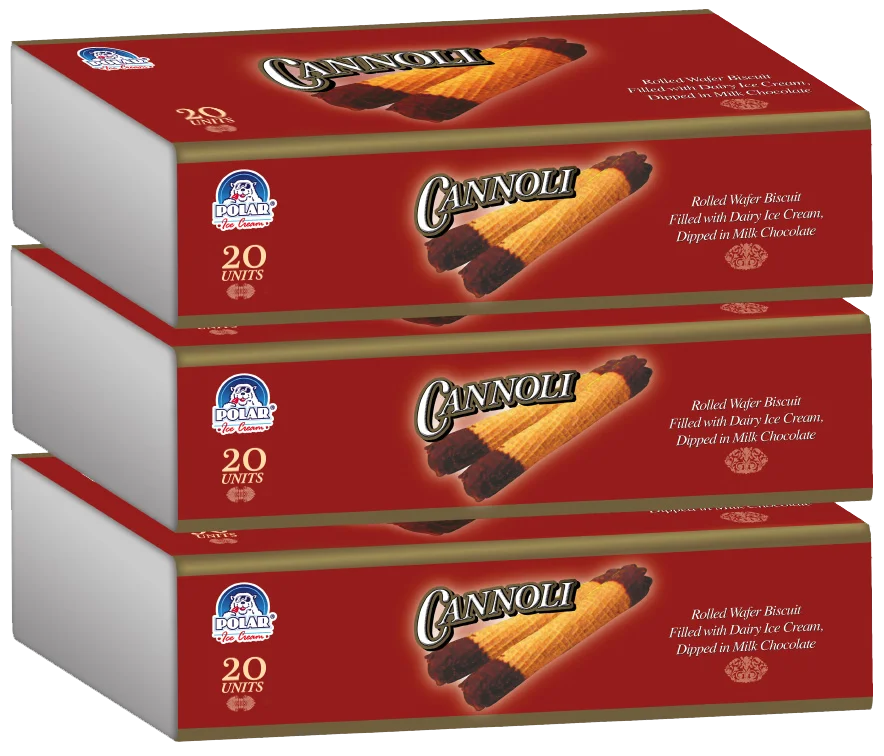 Rolled wafer biscuit, filled with dairy ice cream dipped in milk chocolate